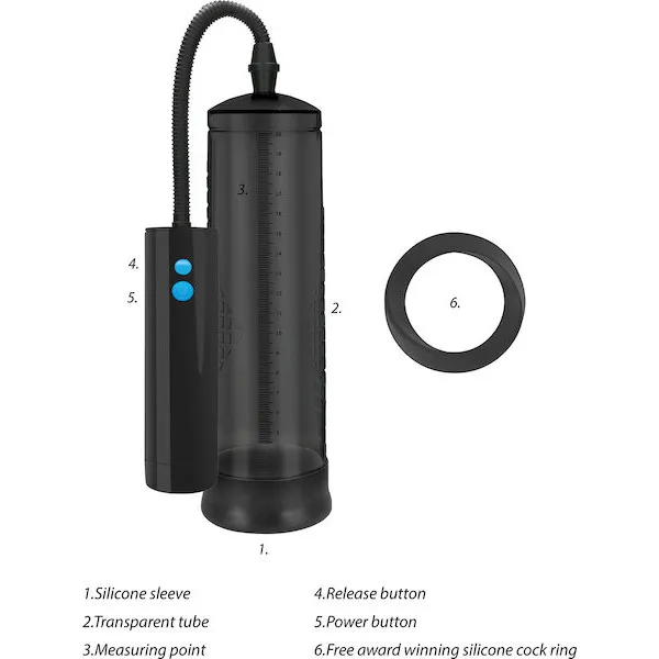 Shots Pumped Rechargeable Extreme Power Pump w/Free Silicone Cock Ring - Black
